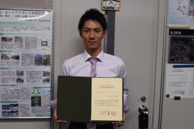 このたび、日本建築学会関東支部研究発表会にて、若手優秀研究報告賞と優秀研究報告賞の2つの賞を頂くことができ、大変光栄であります。研究の実施に際しては、指導教員の中島裕輔先生をはじめ、東京ガスエンジニアリングソリューションズの皆様、データの提供をしていただいた富樫准教授及び関係者各位より多大なご指導ご鞭撻を賜りました。