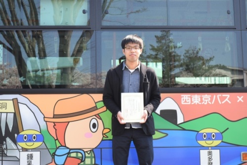 今回、日本経営システム学会においてこのような賞を頂くことができ本当に嬉しく思います。研究に際し指導教員の三木先生や共同研究者である西東京バス株式会社様より多大なご指導ご鞭撻頂きました。この場を借りて感謝申し上げます。今後も地元企業と大学研究の連携を核に、地域社会の発展につながるような研究を続けていきたいと思います。