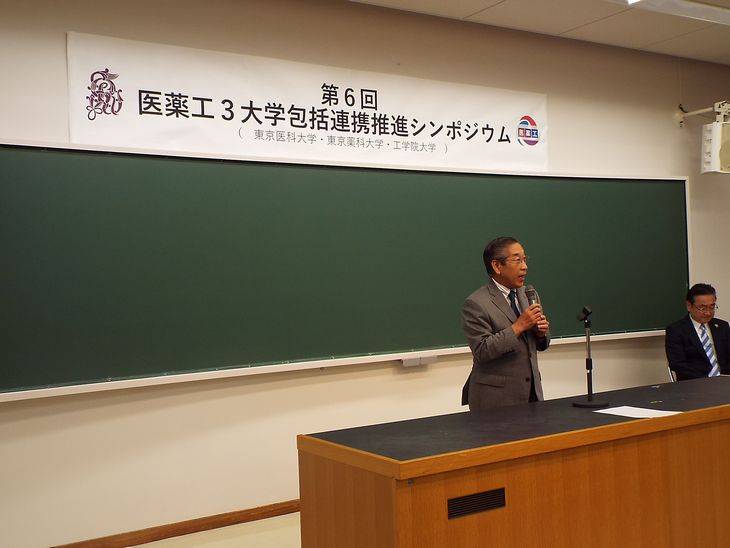 Home 2017年度のお知らせ 医学・薬学・工学で教育・研究連携する3大学包括連携推進シンポジウムを6/17(土)に開催しました 医学・薬学・工学で教育・研究連携する3大学包括連携推進シンポジウムを6/17(土)に開催しました 2017/06/19 シェアする 工学院大学は2010年より、医学・薬学分野の私大として長い歴史と高い実績を持つ2大学(東京医科大学/学長:鈴木 衞、東京薬科大学/学長:笹津 備規)と、「医薬工3大学連携」を締結しています。 6月17日(土)、医学・薬学・工学それぞれの連携可能な分野への理解を深め、より高度な医薬工連携を構築し相乗効果を発揮させることを目的としたシンポジウム(特別講演、ポスターセッション)を東京薬科大学で開催しました。 医薬工連携プロジェクト 産学連携 前へ 一覧に戻る 次へ