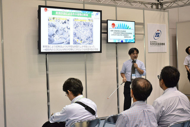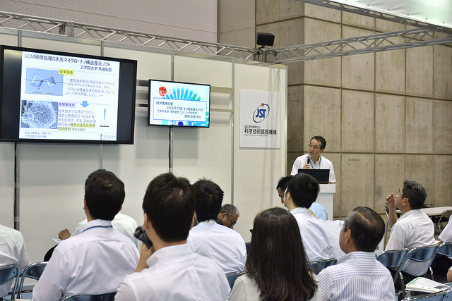 うち9名の先生は、「JSTショートプレゼン新技術説明会」にも登壇し、約5分間で研究内容を解説しました。