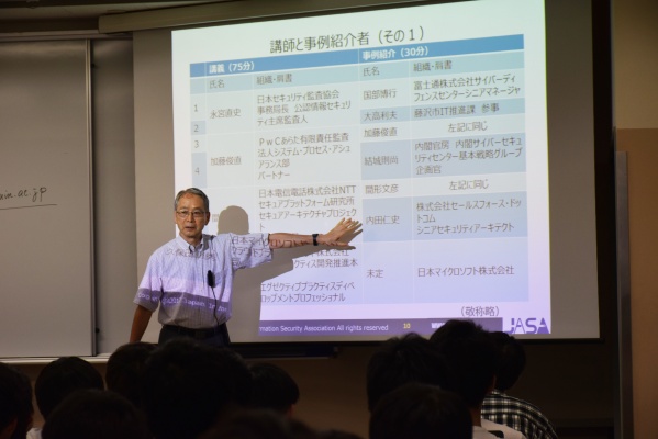 9月11日、情報学部3年生を対象とした授業「~情報セキュリティ監査入門~セキュリティ監査」が始まりました。日本セキュリティ監査協会(JASA)による寄附講義で、企業等とコラボレーションして開講する「寄附講義」は、本学では初めての試みです。