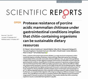 ブタ酸性ほ乳類キチナーゼは、消化器系環境下でプロテアーゼ耐性をもつ:キチン含有生物はブタの持続的な飼料資源となり得る