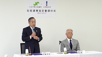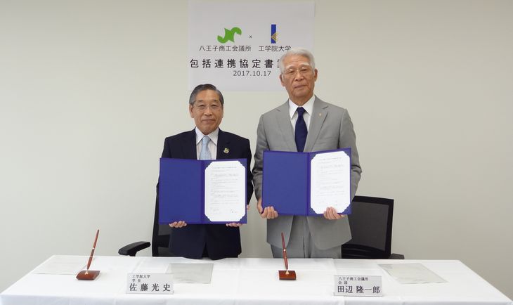10月17日(火)、八王子商工会議所にて工学院大学と八王子商工会議所による包括連携協定締結式を開催しました。