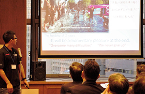 10月にオーストラリアで行われた世界最大級のソーラーカーレース「2017ブリヂストンワールドソーラーチャレンジ」に3度目の参戦を果たした工学院大学ソーラーチームが、2017年11月9日に新宿キャンパスで世界大会参戦報告会を開催しました。参加した多数のサポート企業や学園関係者に対して、濱根洋人監督(工学部機械システム工学科准教授)の挨拶に続いて、学生キャプテンの中川拓朗さん(大学院修士課程機械工学専攻2年)がレースの報告を行いました。