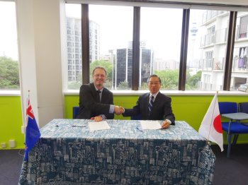 Home 2017年度のお知らせ 佐藤学長がハイブリッド留学®新規提携校(ニュージーランド)を表敬訪問、調印式を行いました 佐藤学長がハイブリッド留学®新規提携校(ニュージーランド)を表敬訪問、調印式を行いました 2017/11/29 シェアする 佐藤光史学長は11月23日、春期特別ハイブリッド留学の新規提携校であるLanguage Studies International(LSI)Auckland校 (オークランド、ニュージランド)を表敬訪問し、調印式を執り行いました。校内を視察後、Brad Roberts校長と意見交換を行い、2018年2月に実施予定の同ハイブリッド留学について、双方にとって有意義な機会となるよう、お互いの意思を新たに確認し合いました。 前へ 一覧に戻る 次へ