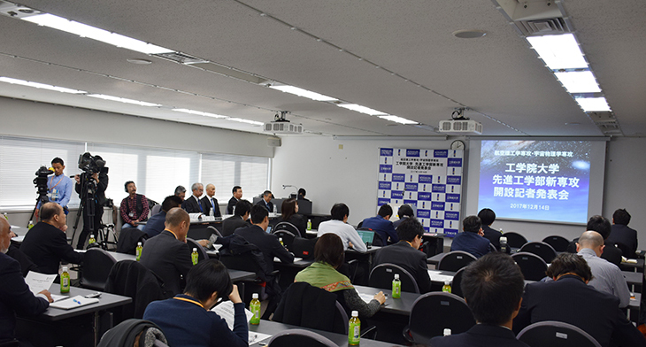 2017年12月14日(木)、「工学院大学 先進工学部新専攻開設 記者発表会」を新宿キャンパスで開催し、新しい2つの専攻「航空理工学専攻」「宇宙物理学専攻」を開設することを発表しました。