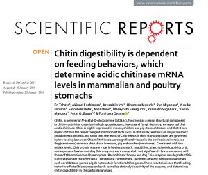 Chitin digestibility is dependent on feeding behaviors, which determine acidic chitinase mRNA levels, in stomachs of mammal and poultry