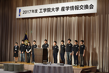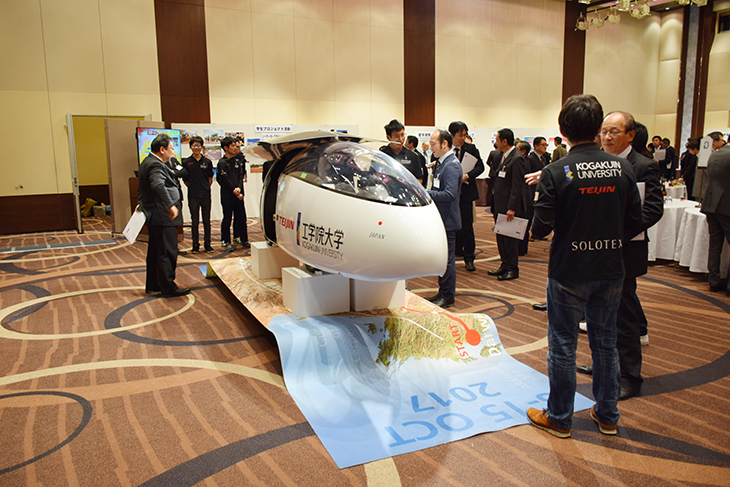 情報交換会では、本学教職員が展示パネルを指しながら説明する姿やソーラーチームの学生たちが製作した『Wing』をご覧になり学生たちに質問を投げかける出席者の姿が見受けられました。