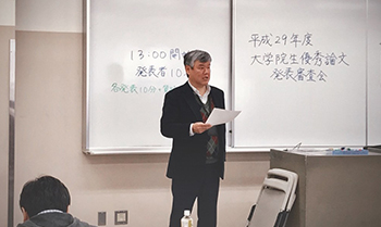 2月20日に行われた発表会では、選出された大学院生がその研究内容を発表しました。