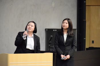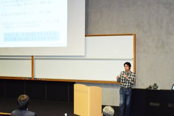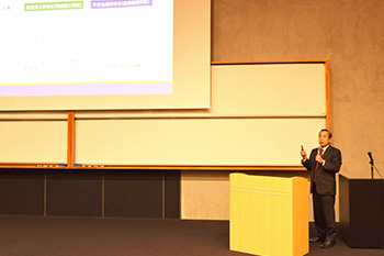 開会に先立ち、佐藤光史学長より「航空理工学専攻」および「宇宙物理学専攻」の発足について説明が行われました。その後、アメリカ・メリーランド州のジョンズ・ホプキンズ大学で24日間にわたり研究に取り組んだ生物医科学研究室に所属する学生による研究奮闘記の発表がありました。続いて、2019年4月に新設される2つの新専攻に関して、佐藤 允准教授(先進工学部 機械理工学科)と武藤恭之准教授(教育推進機構)より、「エンジニア・パイロット」や「宇宙」をテーマに講演が行われました。