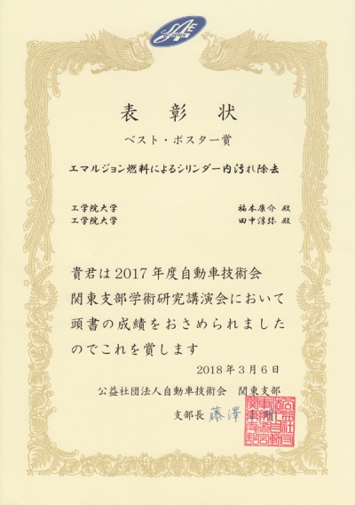 Home 2017年度のお知らせ 機械工学科生が2017年度自動車技術会関東支部 学術研究講演会においてベストポスター賞を受賞 機械工学科生が2017年度自動車技術会関東支部 学術研究講演会においてベストポスター賞を受賞 2018/03/13 シェアする 2018年3月6日に開催された2017年度自動車技術会関東支部 学術研究講演会(自動車技術会関東支部)において、機械工学科4年(内燃機関研究室)福本康介さんが「エマルジョン燃料によるシリンダー内汚れ除去」と題する研究発表で、ベストポスター賞を受賞しました。 自動車技術会関東支部 前へ 一覧に戻る 次へ