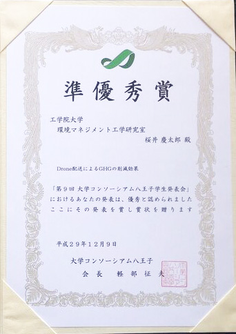Home 2017年度のお知らせ 環境エネルギー化学科生が大学コンソーシアム八王子学生発表会において学生優秀ポスター発表賞を受賞 環境エネルギー化学科生が大学コンソーシアム八王子学生発表会において学生優秀ポスター発表賞を受賞 2018/03/19 シェアする 2017年12月9日に開催された、大学コンソーシアム八王子学生発表会において、環境エネルギー化学科4年(環境マネジメント研究室)櫻井慶太郎さんが「Drone配送によるGHGの削減効果」と題する研究発表で、学生優秀ポスター発表賞を受賞しました。 前へ 一覧に戻る 次へ