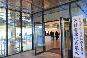 3月30日、八王子キャンパスで創立130周年記念事業募金寄付者銘板除幕式を開催しました。