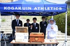 また、新歓実行委員会の学生たちがSNSを活用した企画「2018年入学記念 八王子キャンパス『春のフォトコンテスト』が開始され、キャンパス内に設置されたインスタスポットで記念撮影を行う新入生らの姿が目立ちました。さらに、工学院大学にある9の学生プロジェクトが紹介展示を行い、昨年10月にオーストラリアで開催された世界大会で完走したソーラーチームの学生たちが製作した実車「Wing」の展示をはじめ、新宿と八王子にキャンパスを構える本学の特性を活かし、両キャンパスの環境の違いが蜜蜂に及ぼす影響や変化の研究に取り組むみつばちプロジェクトが採取した蜂蜜(KUTE Honey)の試食体験などが行われ、新入生を迎えたキャンパスは、学生たちの熱気に包まれました。