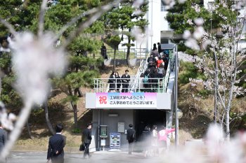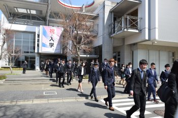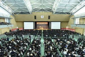 午前の部は、先進工学部、建築学部、大学院 化学応用学専攻、建築学専攻、システムデザイン専攻が、午後の部では、工学部、情報学部、大学院 機械工学専攻、電気・電子工学専攻、情報学専攻の新入生とその保護者らが列席しました。