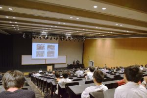 説明会では、9つあるプロジェクトの代表学生が登壇し、2017年度の活動報告や2018年度の活動計画、予算申請などについて説明・プレゼンを行いました。加えて、新たに2件のプロジェクト審査が行われました。