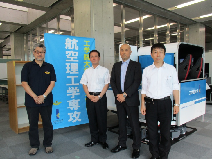 6月12日(火)、本学航空理工学専攻における国内提携フライトトレーニング機関である本田航空株式会社より、執行役員運航総括大澤一朗様、飛行機部部長杉山多賀夫様、飛行機部主幹鈴木和則様の3名が本学のフライトシミュレータを視察に来訪されました。
