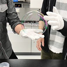 普段は3つの班に分かれ、班ごとに演目を決めて実験を行いつつ、その実験の理論を調べたり、子どもたちに教えることを想定したポスター作成などを行っています。現在は、シャボン玉、水ビー玉、クロマトグラフィーの3つを各班の演目として、7月16日に開催予定の本発表に向け実験に取り組んでいます。