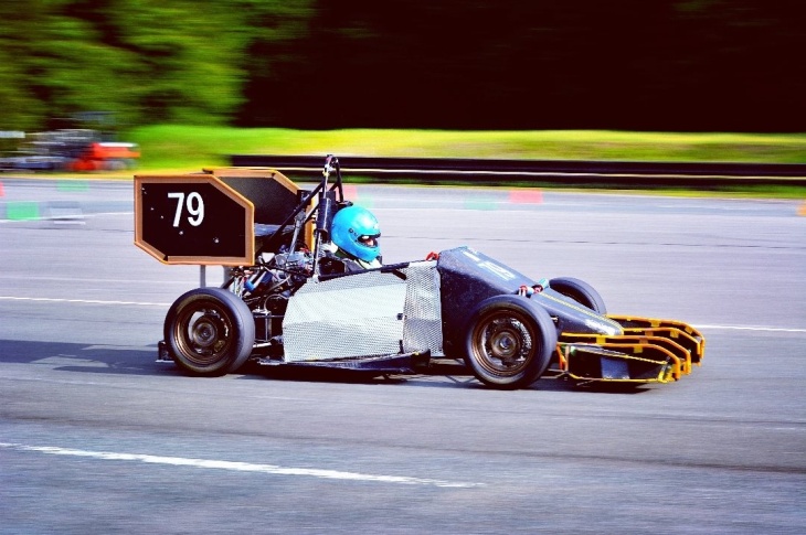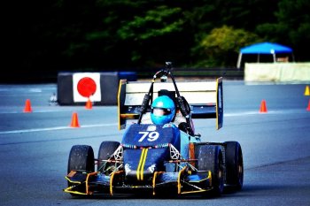 全国から43チームが参加し、工学院大学レーシングチーム(KRT)は初日に車検とドライバー脱出測定をパスすることができました。2日目は、ブレーキロック試験を通過し、アクセラレーション(以下アクセラ)、スキッドパッド、周回走行を行いました。最終日にはアクセラ、スキッドパッド、周回と走行を重ね、アクセラでは参加した43チームの中で最速のタイムを記録することができました。