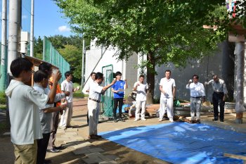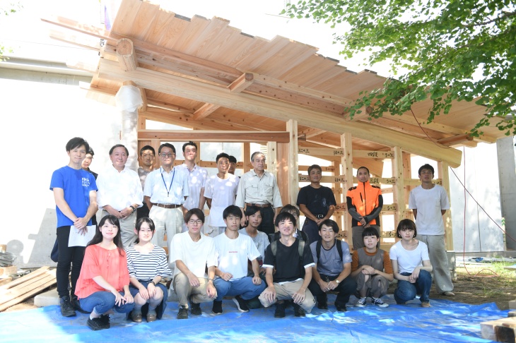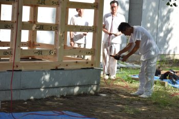 Home 2018年度のお知らせ K×Kプロジェクトが体育倉庫の上棟式を行いました K×Kプロジェクトが体育倉庫の上棟式を行いました 2018/08/28 シェアする 8月25日、K×Kプロジェクトが、プロジェクト第2弾として現在建て替え作業を進めている体育倉庫の上棟式を行いました。朝9時過ぎより組み上げ作業が開始され、15時より上棟式を行いました。 今後、竹小舞かきや8月上旬に練り返した土を利用した荒壁塗りを学生たちが行い、竣工は10月末を予定しています。 学生プロジェクト WA-K.pro 前へ 一覧に戻る 次へ