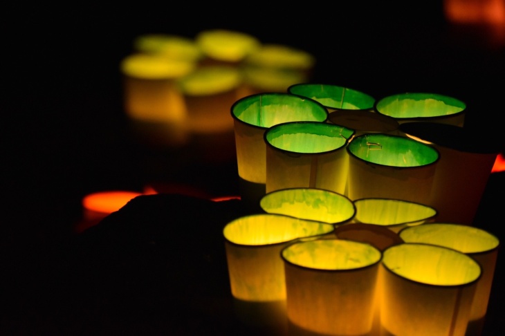 フードフェスティバルと同時に開催されたキャンドルリバーでもお手伝いをしました。色を塗った紙コップにキャンドルを入れることで幻想的な空間を作りました。