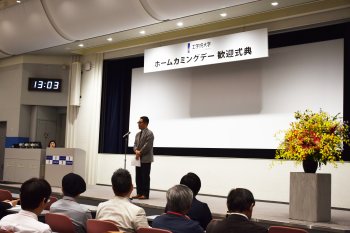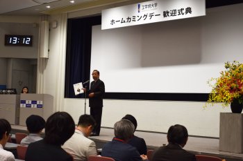13時から始まった歓迎式典では、はじめに後藤 治理事長より歓迎のご挨拶があり、校友のみなさまへの感謝の言葉が述べられました。