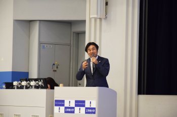その後、本学で工学博士を取得し一級建築士の資格を持つ石田建一様より、特別講演が行われました。現在、石田様は積水ハウス株式会社で常務執行役員・環境推進部長としてご活躍されています。入社後は、快適でエネルギー消費の少ない暮らしを提供する住宅の研究開発及び普及に携わり、在学時の研究内容や社会人になってからの研究開発についてお話いただきました。