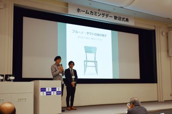 続いて、建築学部・鈴木敏彦研究室を代表してOBの浅水雄紀様より、修士課程在学時に携わった「緑の椅子復刻プロジェクト」について発表がありました。1935年に建築家ブルーノ・タウトが試作した「緑の椅子」を、3Dスキャンなどの最新の技術によって見事復刻したことについて、ご紹介いただきました。