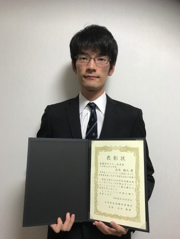 日本材料試験技術協会 第276回材料試験技術シンポジウムにおきまして最優秀ポスター発表賞をいただき誠に嬉しく思います。本賞をいただく事ができましたのは立野先生の活動全般にわたる多大なるご指導の元実現できたものと考え、心より感謝致します。