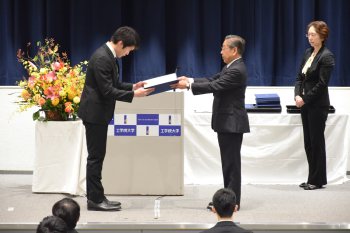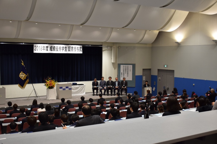 本日は「大学院進学奨励学費減免」「大学成績優秀学生奨励奨学金」および「学園創立125周年記念大学入学試験成績優秀者奨学金」「大学入学試験成績優秀者特別奨学金」対象学生へ証書の授与が行われました。