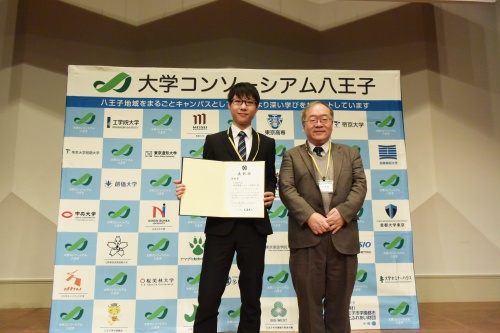 12月9日(日)に開催された大学コンソーシアム八王子学生発表会「学生が市長へ直接提案!~最終選考会~」において、コンピュータ科学科4年 田中 大地さん(経営情報システム研究室・三木 良雄教授)が、奨励賞を受賞しました。最終選考会には、多くの応募の中から事前審査で選出された8団体が参加しました。