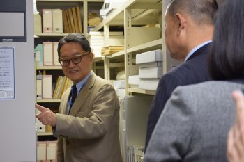 また、本学図書館には、青森県弘前市出身で考現学の提唱によって知られる今 和次郎(1888~1973年)コレクションを所蔵しており、同日、歓談後に市長が新宿キャンパス図書館をご見学されました。