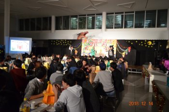クリスマスパーティは毎年、12月に実施しており、今年度も18号館食堂2階を使用し、友人同士の参加は勿論のこと、他学科の学生による交流を深めることを目的としています。今年は、参加および運営側の学生、総計125名の参加がありました。