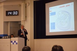 第1部では「すべての人のための共生工学研究とその発展」をテーマに、建築ロボット工学専門のトマス・ボック教授(ミュンヘン工科大学)が基調講演を行いました。