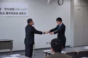 表彰状を授与された学生からは、「今後ある発表の機会にもこの経験を活かしたい」「学外研修での成果報告会は、インターンシップでの学びを振り返る良い機会でした」などの感想を、喜びの表情とともに述べていました。