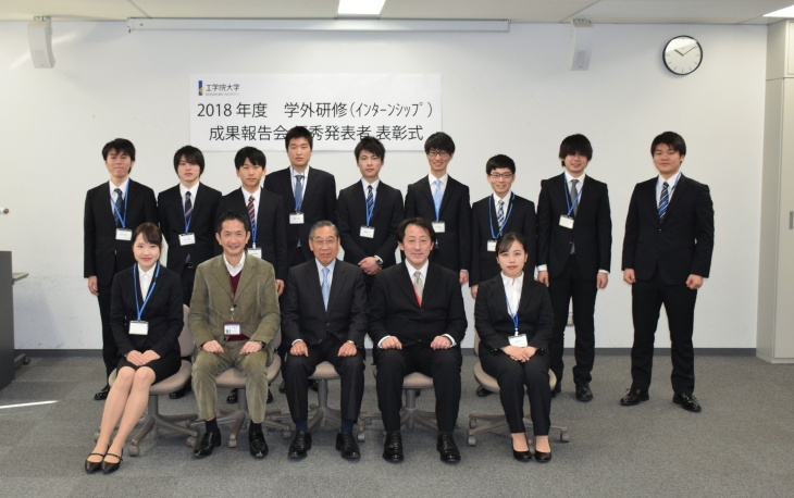 学外研修(インターンシップ)成果報告会(2018年11月22日開催)で、発表内容が特に優秀であると評価された学生を対象に、2019年1月22日に新宿キャンパスで表彰式を開催しました。今年度の表彰対象者は15名でした。