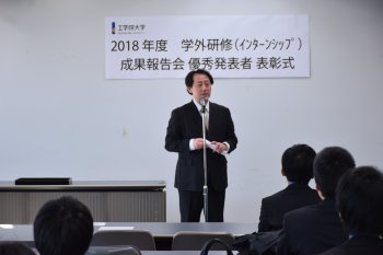 表彰式には佐藤学長や渡部副学長、遠藤副学長、二上インターンシップ委員長等が出席し、表彰対象となった学生を祝福、激励しました。
