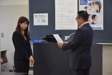 同日は、場所を変えて、株式会社ピクス様との新規連携調印式も行われました。同社代表取締役社長の中祖 眞一郎様と常務取締役の松居 秀之様がご出席くださり、「若い人の感性に期待している」とのお話がありました。