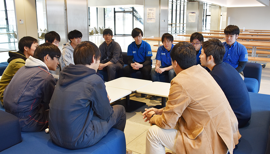 第2部では、カーセンサー編集長の西村泰宏様をお招きし、座談会を行いました。自動車業界の今後や学生たちの大好きな車、将来の夢などをざっくばらんに話しました。学生たちは楽しそうに、そしてとても真剣に西村様からの問いかけに応えていました。
