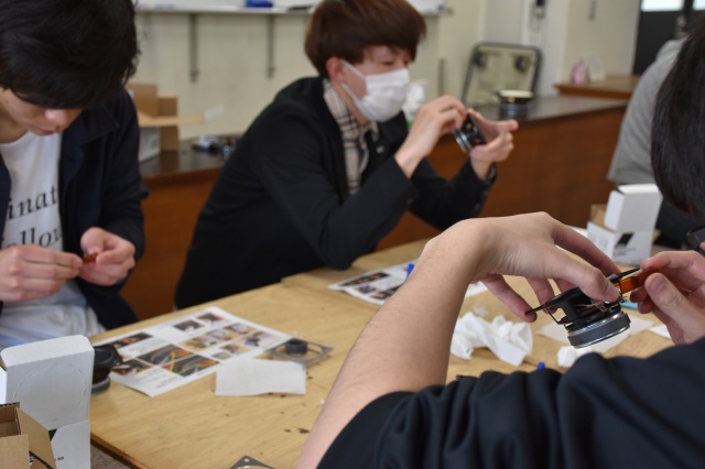 今年度は、フォスター電機株式会社 フォステクス・カンパニー様にスピーカー製作キットをご提供いただき、授業内で学生たちがスピーカーを製作する課題に新たに取り組むことになりました。新1年生にとって、大学に入学して初めての授業でしたが、一人一人が部品からスピーカーを組み立てていくことで、その構造について真剣に考え理解し、ものづくりの楽しさを実感していました。
