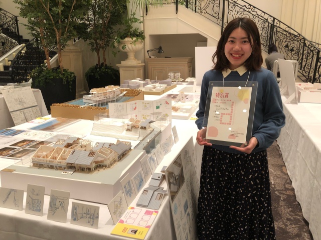 このコンペは建築だけではなく、プロダクトデザインなども含めての「デザイン」が対象でした。あらゆる分野の審査員の方や他の参加者の方から意見をいただくことで、多角的な視点から卒業設計を見直すきっかけになりました。賞をいただけたことももちろん嬉しいですが、学外に出すことで、自分の新たな強みも弱みも知ることができた、という収穫がとても大きいです。これから大学院に進学ですが、視野を広くもって建築を学んでいきたいと思います。
