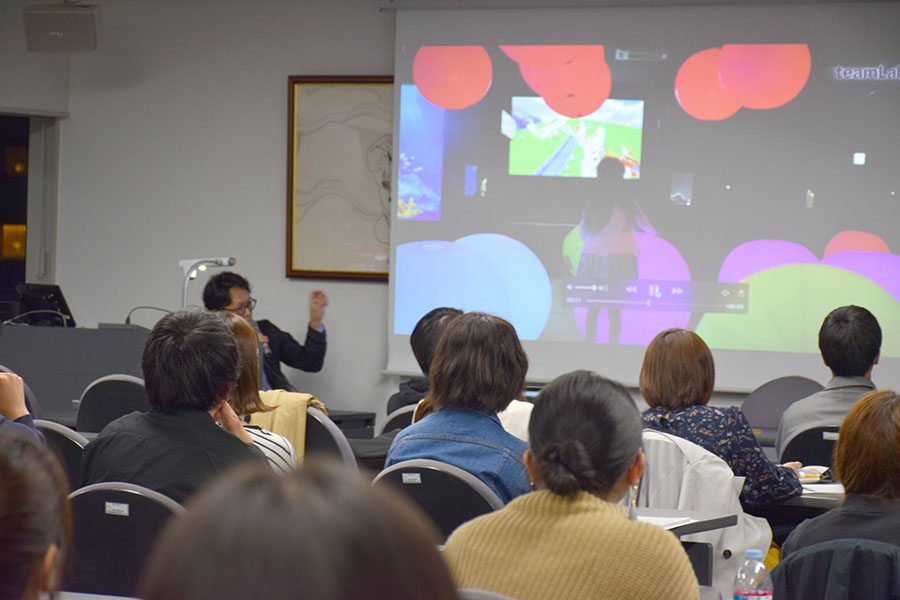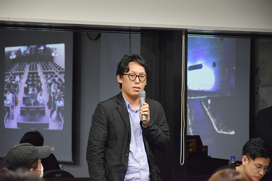 続いて、チームラボアーキテクツ 河田将吾代表より、今回のコンペティションのテーマが発表されました。コンペティションのテーマは、「情報時代の遊具を考える」。チームラボアーキテクツの作品紹介を交えながら、情報社会になったことで人の生活が大きく変化していること、そのような状況で建築や空間の在り方を問い直すことについて語られました。