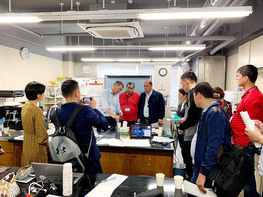 6月9日より6月15日の間、日本・アジア青少年サイエンス交流事業(さくらサイエンスプラン)の支援により、学術交流協定校であるサマルカンド国立大学(ウズベキスタン)から、大学院生と教員を受け入れました。これは、同大学の工学分野に関連する学生を招き、本学の教員による特別講義の聴講、本学学生との意見交換や、日本の文化に触れるプログラムを通して、我が国の最先端科学技術と日本文化に触れることを目的として実施したものです。