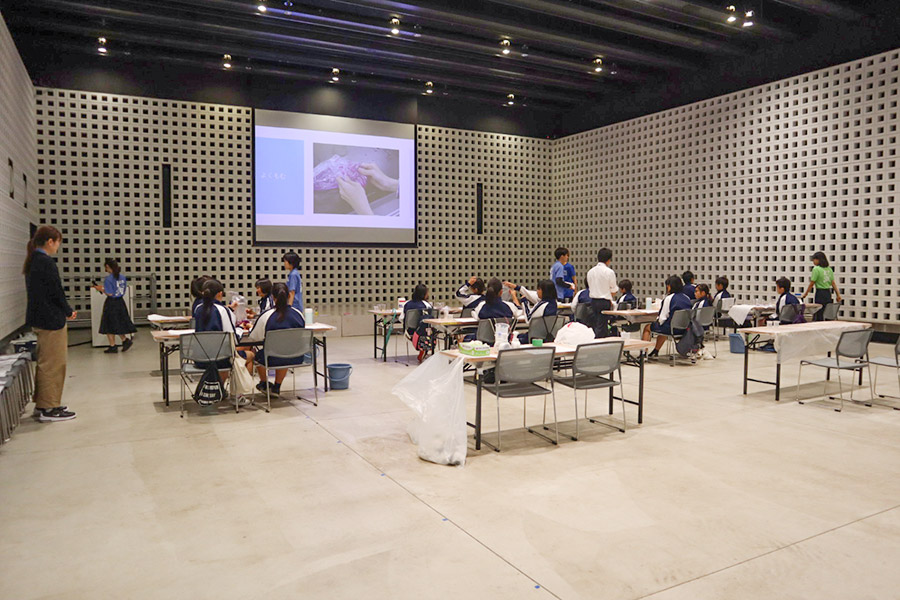 今回は、八王子市内の中学校の生徒に向けて理科授業を行いました。演目は、墨流し、ダイラタンシー、万華鏡、紫キャベツ指示薬の4つです。ふれあい講座は今回が初めての取り組みでした。