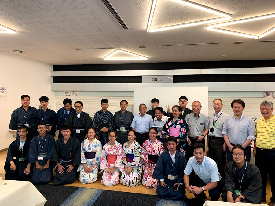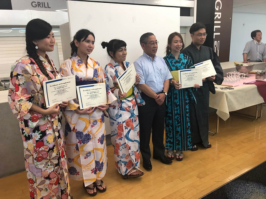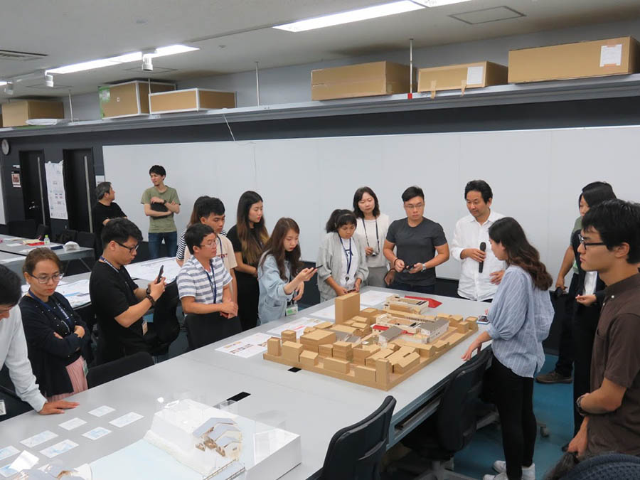 7/25、7/26には、フィールドワークとして、3大学の学生が一緒に、東京駅、お台場、浅草などをめぐりました。各地で専門の先生方が建築的な特徴を説明し、貴重な学びの機会となりました。7/27のフェアウェルパーティーでは、佐藤学長から来日した12名に修了証が授与され、達成感と共に6日間の予定を終了しました。