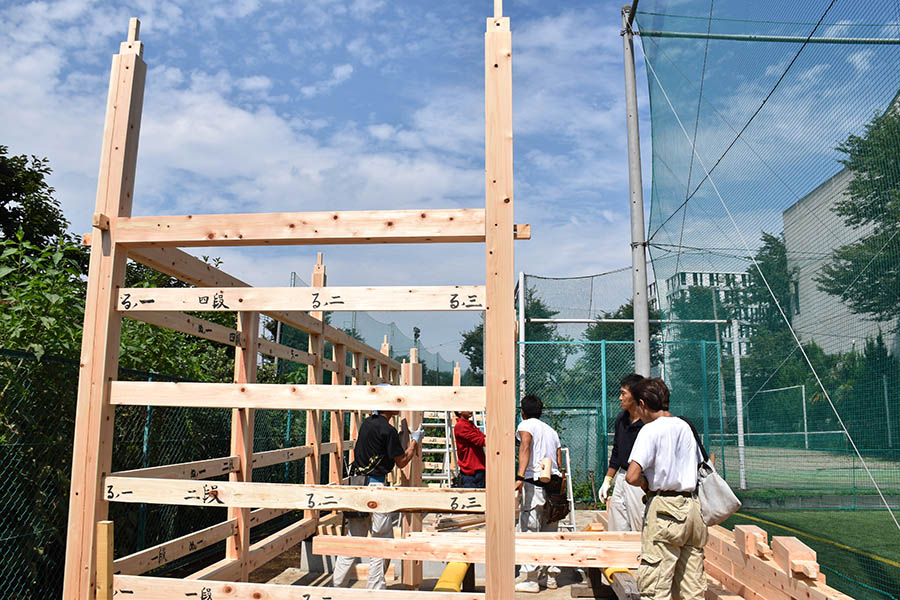 「K×Kプロジェクト」は、八王子キャンパス内に点在する老朽化した倉庫を学生たちが設計し、10年かけて多摩産の木材を使用した木造建築に建て替えることを目標に活動しています。活動3年目のなる今年は、工学院大学附属中学校・高等学校に、体育授業用倉庫を建設します。