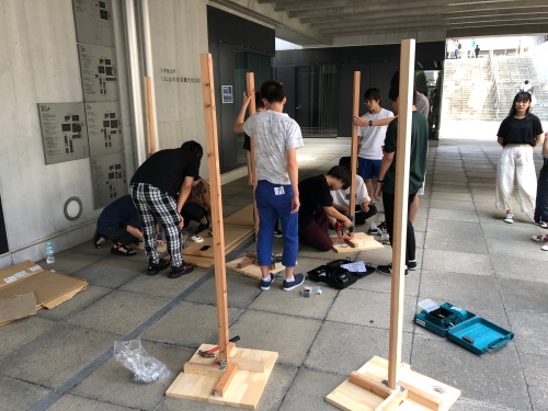 今回の展示空間のデザインの活動では、より多くの学生に他のプロジェクトを認知してもらえるような空間を作り上げることを心掛けました。一からデザインを練り、展示空間の制作までWa-k.proの学生で作り上げました。活動を通して自らデザインしたものを実際のスケールで作りあげることで適切な開口部の高さや人間の高さに合わせたデザインを学ぶことができました。皆で協力しあい、ものを作り上げることの喜びと達成感を感じました。