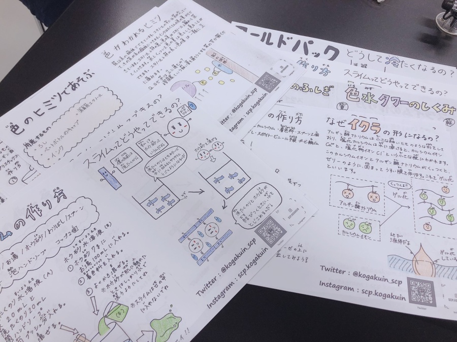 10月12、13日は工学院大学八王子キャンパスでアロマディフューザー、14日は杉並区のセシオン杉並でクロマトグラフィー、ふわふわスライム、人工いくら、コールドパックを行います。