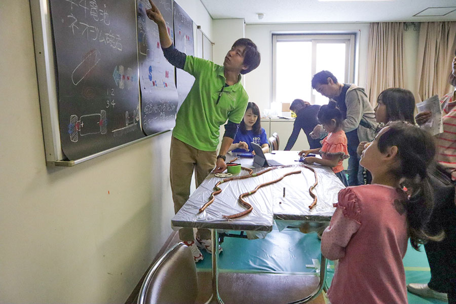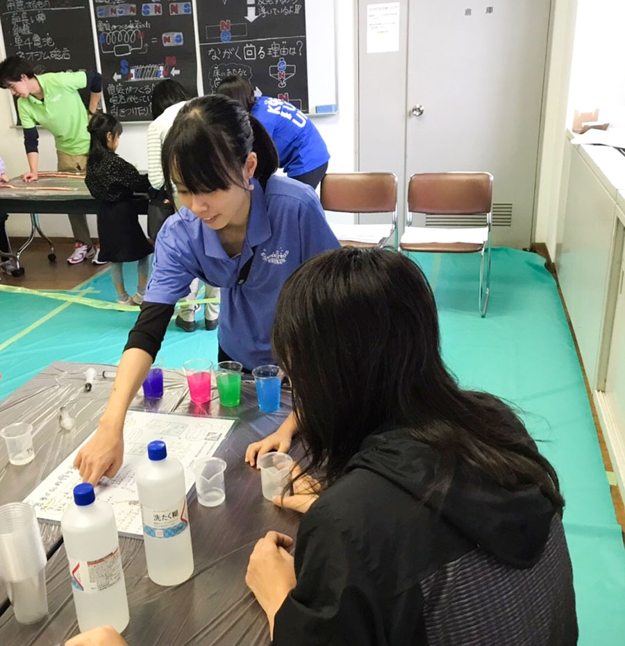 1年生も先輩と協力してテーブルに立ち、子どもたちに教えている姿が見えました。今回のイベントを通して子どもたちに科学を教えるだけでなくスタッフも学んだことが多くあったと思います。