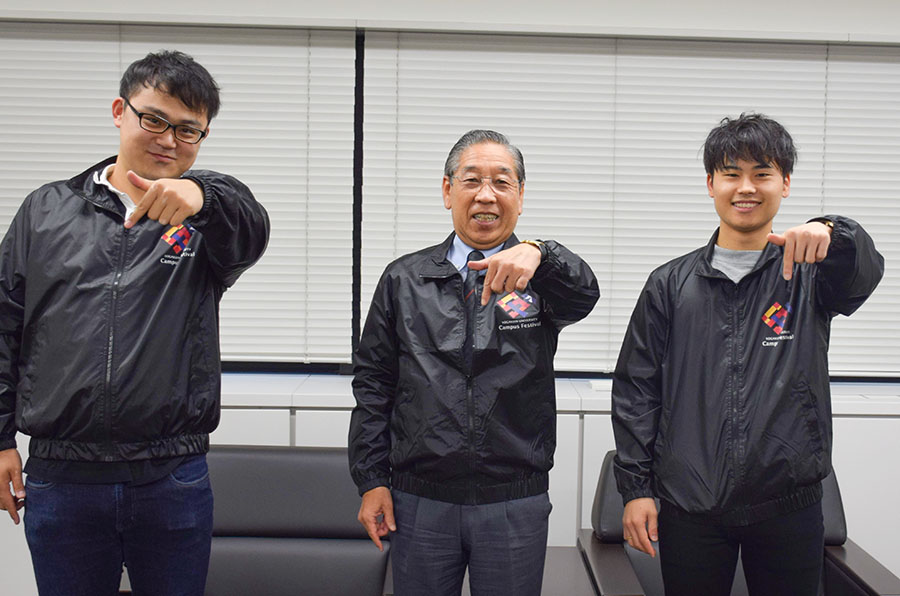 10月25日(金)、学園祭実行委員会新宿祭実行部が、今年の新宿祭ジャンパーを学長に渡し、新宿祭へ協力のお願いと、成功への意気込みを報告しました。